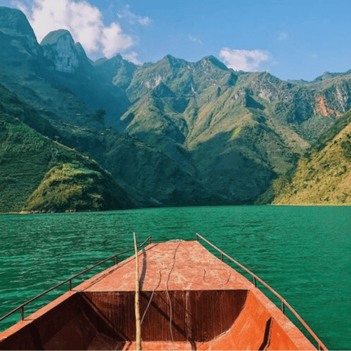 Dòng sông Nho Quế xanh như ngọc thạch dịu dàng uốn lượn qua các hẻm vực dưới chân đèo nên vừa kỳ vĩ nên thơ, vừa hiểm trở cheo leo, càng mê hoặc biết bao con tim hướng về nó.